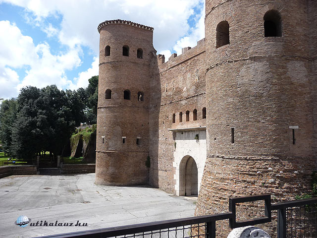Visszasétáltunk a metróállomáshoz egy megállót befelé metróztunk a San Pietro kapuig. Az antik Rómát fal övezte. Aurelius császár 270-ben építtette a jelenleg is álló falat: A Pincio alatt kezdődik, a Tiberis mellett halad, az Aventinus és a Caelius lába mellett átfogja a lateráni völgyet és visszakanyarodik a mai Termini pályaudvar környékén a Pincioig 19 km hosszúságban. A falakon csak kapukon lehetett bejutni, ezeket ma is használják. Ahol a forgalom nagyobb, mint amit a kapuk elbírnak, mellette nyílást vágtak a falba. A Porta San Pietro ma múzeum. Makettek mutatják be a fal- és kapurendszert.