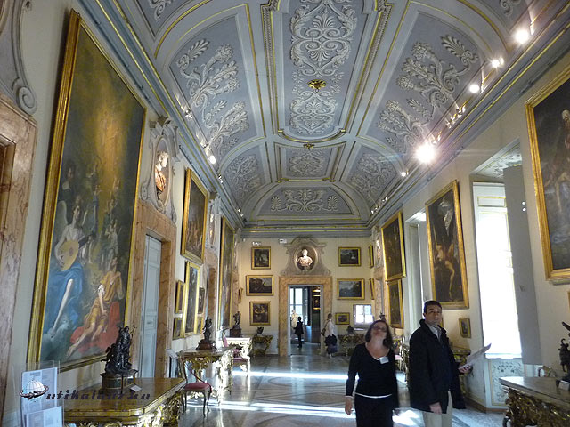 Mivel a Villa Farnese zárva volt, csak a Corsini palotában lévő képtárat jártuk végig. Az első emeleten lévő kiállítási termekhez vezető útvonal is szép, kár, hogy a palota más részeibe nem engednek bepillantást. A Corsini bíboros által emelt épület jelenleg az államé, itt van a Állami Régi Képtár, elsősorban 17. és 18. századi képekkel. Sajnos itt sem szabad fényképezni.
