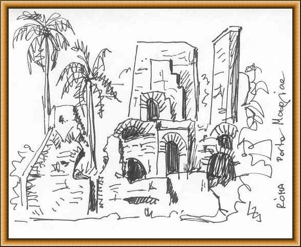 Ha szállásunk kapuján másik irányba fordulunk, hamarosan a Vittorio Emmanuele II térre érünk. A fák között hatalmas rom terjeszkedik. A térképeken Porta Magicát olvashatunk, az útikönyvben Trefei di Mario néven a Flaviusok korából származó nimpheum maradványának véli.