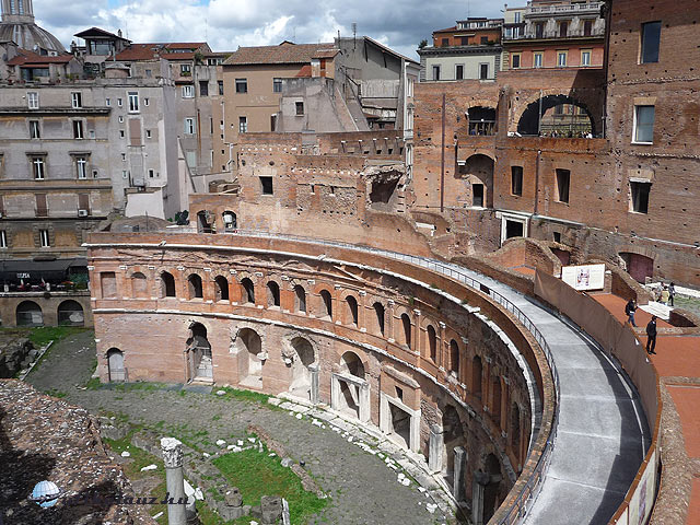 A Santa Maria Maggiore felderítése után beljebb igyekeztünk a városba. Egy trafikban vásároltunk 16 €-ért heti bérletet, amely érvényes buszra, villamosra, metróra. Ötletünk bevált, jól tudtuk használni bérletünket. Első utunk Traianus vásárcsarnokához vezetett. Traianus dákok elleni sikeres hadjárata után hatalmas építkezésekbe kezdett. Nemcsak fórumát építette fel, hanem mellette a világ első bevásárlóközpontját: árultak itt gabonát, halat, fűszert, gyümölcsöt.