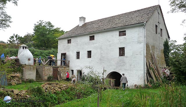 Mohács felé visszatérve láttuk zuhogó esőben a Csele-patak hídjánál az emlékművet. II. Lajos itt (vagy a közelben) fulladt a megáradt patakba. Újabban több orgánum is felveti, hogy mégsem végzetes baleset, hanem királygyilkosság történt. De ez olyan régen volt, bizonyító erejű dokumentumot nem tudnak felmutatni, Brodarics szerémi püspök emlékezése szinte az egyetlen támpont. A mohácsi csata okozta katasztrófán ez úgysem változtatott semmit. A Csele-patak nem csak a szerencsétlen II. Lajosról híres. A patak hajdan négy malmot is forgatott az 1721-i mohácsi adójegyzék szerint. Három jelenleg átalakítva lakóház, nyaraló. A negyedik viszont igen romos állapotban leledzett, amikor Mohácsi Bugarszki Norbert (akit Majson ismertünk meg) ráakadt és beleszeretett. Sok tanakodás után 2007-ben vette meg, és a romos épületet megint csak a két kezével, sok-sok munkával rendbe hozta. Sajnos víz már nem folyik a malomcsatornában, helyette villanymotor működteti az őrlőköveket. Láttuk is a malomköveket, és megtudtuk hogy mit is csinált a harmadik tarka macska a malomban: „…harmadik követ vág”, vagyis vésővel érdesíti a malomkő felületét. A hatalmas malomépületben valóságos malomtörténeti kiállítás látható: kézi malmok (Kipróbáltam. Szörnyű nehéz forgatni), hengerszékek, sziták, stb. Az udvaron kenyérsütő kemence, mészégető kemence. A legfelső emelet a vendégfogadásé, gyermekcsoportok, esküvők rendezésére alkalmas. A patakmalmot jelenleg a mohácsi Városvédő egyesület működteti, de a mindenes továbbra is Norbert. A malom előzetes időpont egyeztetés után látogatható, belépődíj 300 Ft.