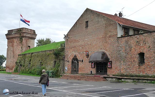 Másnap 8-kor már indultunk is – esőben. De mire Eszékre értünk, elállt az eső, még a nap is néha halványan felsejlett a felhők mögött. A busznak nem volt egyszerű parkolni a régi belvárosban, vagyis a vár területén. A híd környékén sikerült megállnunk, közel a várkapuhoz. Innen már gyalog sétáltuk tovább.