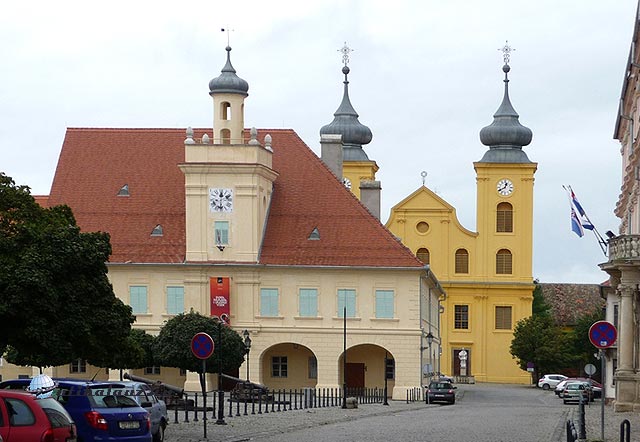 Maga az óváros, a Tvrda a falakon belül terül el. Közepén van a tágas Szentháromság tér, szép régi házakkal, egyik oldalán éttermekkel, kávézókkal, ír pubbal. Az egyikben nagyon finom kávét ittunk, szép bolthajtásos teremben, 1764-ből. Szépen rendbe hozott épületből – valaha a városháza lehetett – cselló szólt. Ma zeneiskola. A mellékutcák már lényegesen elhanyagoltabbak. A házak omladoznak, sok a bedeszkázott ablak. A közelben áll a frissen tatarozott barokk Szent Mihály templom. Sajnos a kapuja zárva.