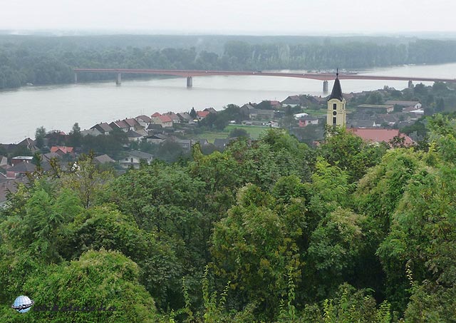 Így lelkileg is megerősödve folytattuk utunkat. Előbb Kiskőszegre, vagyis inkább fölé, a Báni-hegy Duna fölötti kilátóhelyére. A Báni-hegy meredek lejtővel ér véget a Dunánál, szép kilátást nyújtva a folyóra, a Duna hídra, Kiskőszegre. Igaz az eső továbbra is szemerkélt, de a kilátás kedvéért csak kikászálódtunk az útra. A kilátóhelyen puskát lengető partizán szobra fogadott. A kilátás még ilyen időben is szép volt. A híd a Dunán horvát területre vezet, néhány falu van ott, de a híd túlsó végén szerb határőrök állnak. A helyzet tisztázatlan, a két állam vitatkozik és tárgyal…