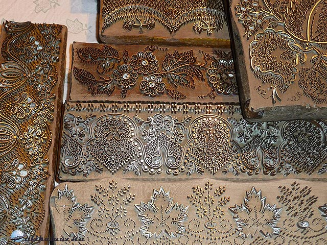 (jobbról). A falu máig őrzi a XVIII. századi utcaszerkezetét, amely akkor alakult ki, amikor Mária Terézia németeket telepített ide a török korban elpusztult, elmenekült lakosság helyébe. Sárdi Jani bácsi éppen azért telepedett ide kékfestő műhelyével, mert a sváb parasztok szívesen hordták hétköznap a kékfestő ruhát. Mondhatni a kékfestő volt az akkori kor farmerja. Jani bácsi elmúlt már 90 éves, műhelye már csak látványosság – igaz nem akármilyen. Szívesen elmagyarázza a kékfestés folyamatát, sőt bemutatja, hogyan is kell a mintát nyomtatni az anyagra. Ez talán a leglátványosabb művelet. Az egyszerű minta nyomásához a 30×30 centis fadarabba nyomott huzaldarabokból kialakított dúc szolgál. Egy kézzel megemelni, pontosan illesztve a mintát, „drukkolni” sem könnyű. Egy vég vászon drukkolása 4-5 óra alatt végezhető el. És ez csak a kezdet. Megszámolni se lehet, hányszor kell egy vég anyagot a festékbe mártani, szárítani, újra mártani… Érthető, hogy a kilencvenéves mester már nem vállalkozik a teljes munkafolyamat elvégzésére. Csodálatos mintakészletet gyűjtött össze, illetve alkotott élete folyamán, ebből jó néhányat megcsodáltunk. Kár, hogy unokája, vagy valaki a faluból nem folytatja a mesterséget. Legnagyobb bánatunkra mivel nem készül új termék, vásárolni sem lehetett.