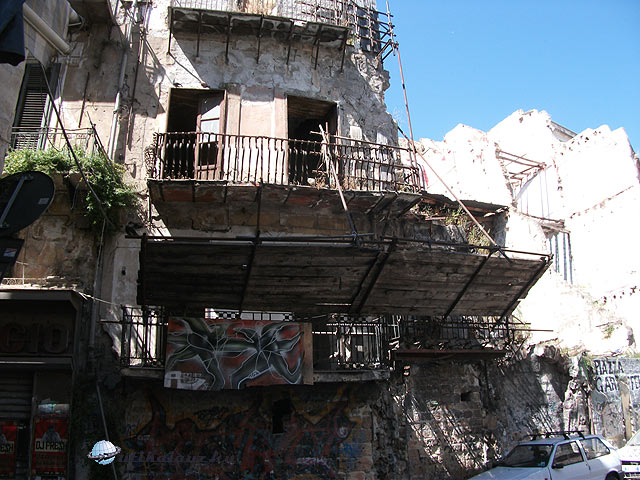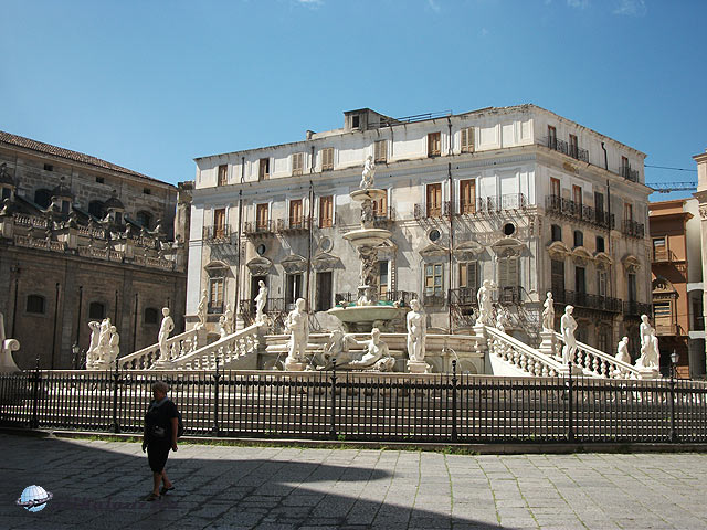 Már az első benyomások sokkal jobbak voltak a vártnál. Eléggé rendezettnek tűnt és a közlekedés is meglepően folyamatos volt. A Stazione Centrale (központi pályaudvar), az óváros szélén, a buszos közlekedés és gyalogos városnézés szempontjából is kiváló kiindulási pontnak bizonyult. Innen indulva hamar elértük a híres Quattro Canti nevű útkereszteződést, ami az Óváros középpontját is jelöli. A négy csonkolt saroképület falain a hajdani Habsburg uralkodók szobrai láthatók. Onnan csak pár lépésnyire volt egy nagyon érdekes tér a városháza előtt, a Piazza Pretoria, melyet szinte teljesen betölt egy szobrokkal túlzsúfolt szökőkút. Mivel éhesek is voltunk, meg csak pár utcányira volt Palermó leghíresebb, félelmetes hírű piaca, a Vucciria, oda indultunk. Ez egyesek szerint már csak árnyéka hajdani voltának, míg mások szerint nem változik évszázadok óta. Így aztán lehet, hogy túlságosan is rákészülve, nagyon óvatosan jártuk végig Palermó e „legélettelibb” részét, a helyet, ahol állítólag „kibontakozik a város lelke”. Hátha tényleg a város lelkének képi megjelenítését láthattuk, akkor az ijesztően elhanyagoltnak látszott, mintha a középkori megépítés óta csak használták volna a legcsekélyebb felújítás nélkül. Az épületek egy része részben már leomlott, a többi, számunkra úgy tűnt, hogy az összeomlás határán van. De hát ez volt igazán érdekes, egyszerre ijesztő is meg egy kicsit elbűvölő. Az ott elfogyasztott tenger gyümölcsei tál mindenesetre ízletes volt.