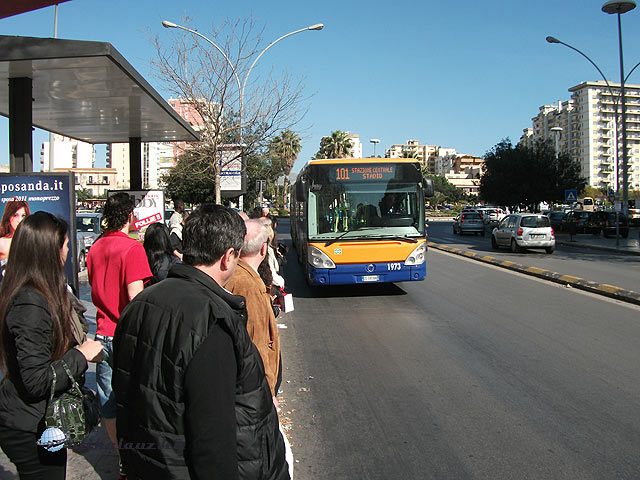 A szálláshely megválasztásánál el akartuk kerülni a zajos Palermót, így kerültünk a vele szomszédos Sferracavalloba. Ez nagyon jó választásnak bizonyult, mivel két buszjárat is összeköti a nagyvárossal. Mi mindig a Stadio-hoz közlekedő járatot (628) választottuk, ahol legalább 10 további járat végállomása volt. Itt átszállva, a csúcsidőben kb. 10 percenként közlekedő, csuklós 101-esre 10-15 perc alatt elérhető volt a híres Quattro Canti és a Stazione Centrale a várost kettészelő, több km-es és nyílegyenes főútvonal másik végén. A négy nap alatt a buszozás miatt csak kétszer volt kellemetlenségünk, de akkor nagyon.