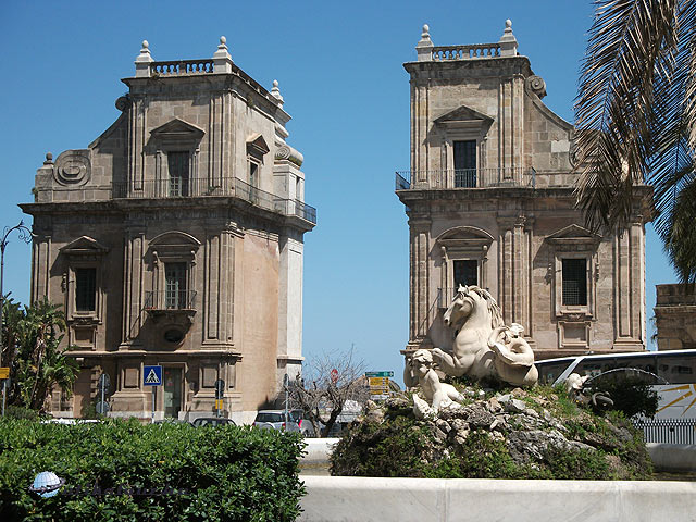 Az alábbi két kép stílszerűen két nevezetes városkaput ábrázol, melyek a város, pontosabban az óvárost kelet-nyugati irányban kettészelő, kb. 2 km-es főútvonal végein találhatók. A Királyi Palotával egybeépített Porta Nuova biztos azért szebb, mert egy német-római császár tiszteletére emelték 1535-ben. A Porta Felice, a XVI. században elkészült főutca tenger felőli kapuját jelezte, ahol ma egy vonzó tengerparti zöldterület található.