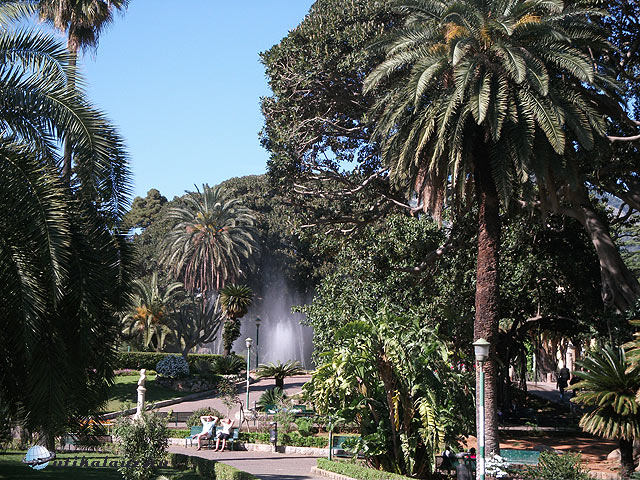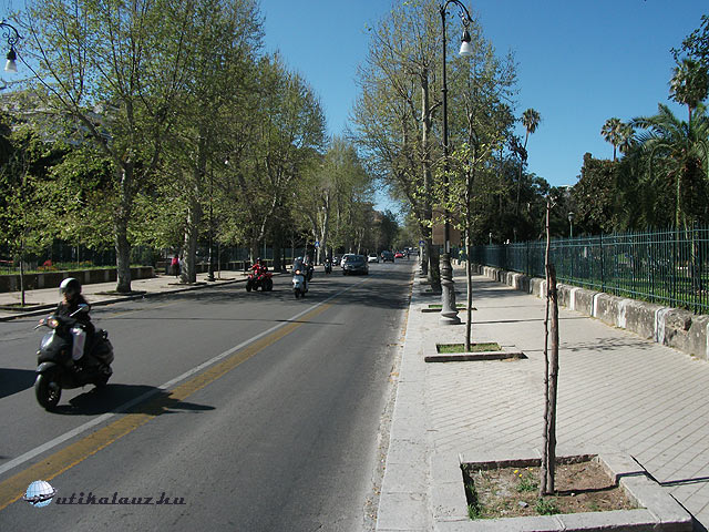 Nagyon értékeltük és pihenésre többször is használtuk a gyönyörű parkokat és a kikötőnél levő óriási zöldfelületet (Terazza a Mare). Az óváros kellemes színfoltja a La Cala vitorláskikötő szomszédságában a Giardino Garibaldi. A legrégibb közparkot, a Villa Giuliát és mellette a Botanikus kertet kb. 10 perces sétával értük el a Stazione Centraletól. A város közepét átszelő főútvonal mentén, az egymással szemben fekvő Villa Trabia és a különösen szép Giardino Inglese eléréséhez a belvárosi buszos körjáratok egyikével (linea rossa) utaztunk.
