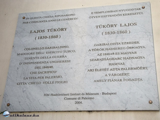 A városban sétálva jó volt megismerni, ahogy a helyiek emlékeznek a magyar hősökre. Azt tudtuk, hogy a főpályaudvartól, azzal szemben állva, jobbra indul egy főútvonal, a Corso Tukory, amit emlékül, az 1848-as szabadságharc emigráns őrnagyáról, Tüköry Lajosról neveztek el, mivel, Garibaldi mellett esett el 1860-ban a Palermo bevételéért vívott csatában. A főútvonal elején örömmel fedeztünk fel egy emléktáblát, melyen a hős katona neve, a magyar és az olasz szövegben is helyesen szerepel.