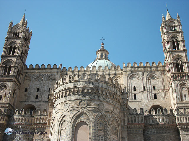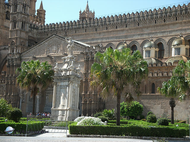 Palermo templomai közül a normann korban épült katedrális tetszett a legjobban, kívülről. Sétáink során háromszor érintettük és rendre megcsodáltuk az óriási erődítményszerű épületen található különböző építészeti stílusokat, melyek több évszázad (XII-XVII.) alatt alakultak ki. Sajnos a templom belső terében nem így működött a sorozatos átépítés. Az adott kor ízlésének megfelelően nem őriztek meg semmit és rendre teljesen átépítették, végül „sikerült” annyira megváltoztatni, hogy a templomba belépve elmarad az a hatás, ami a kívülről teljesen hasonló stílus-keveredést mutató Monreale katedrális esetében megmaradt és fantasztikus élményt okoz.