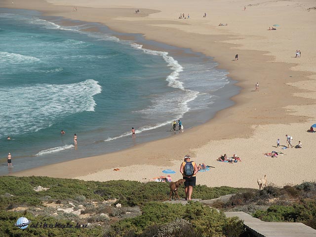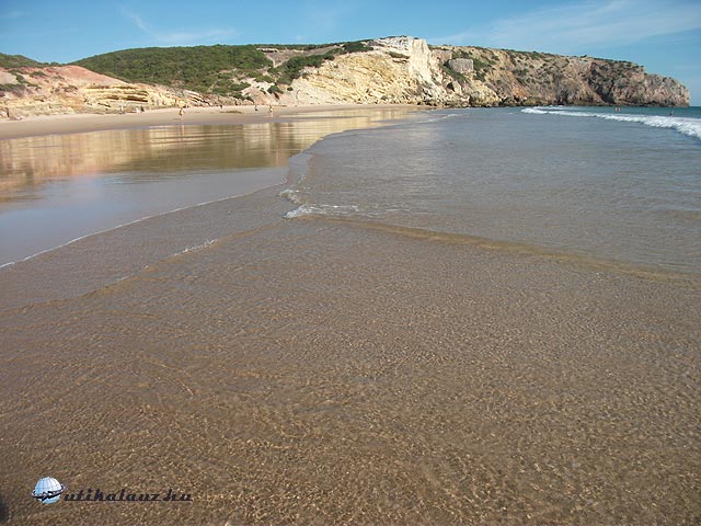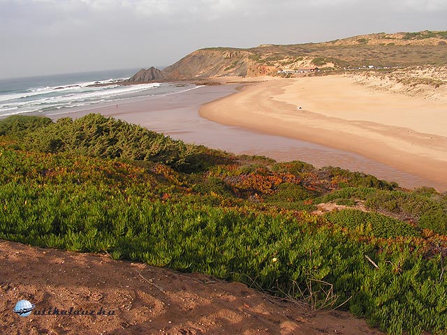 A fennsíkon maradva Praia de Monte Clerigo következett, ami egy kis halászfalút és egy óriási homokos strandot jelöl. Észak felé innen egy földút vezet Praia da Amoreirahoz, melyet, dagály esetén, így csak az Aljezúr folyón átúszva lehet elérni. Mi inkább körbe mentünk és a főút felől közelítettük meg. Pár kellemes órát töltöttünk a strand és a lagúna bejárásával, mely utóbbiban jót is úsztunk.