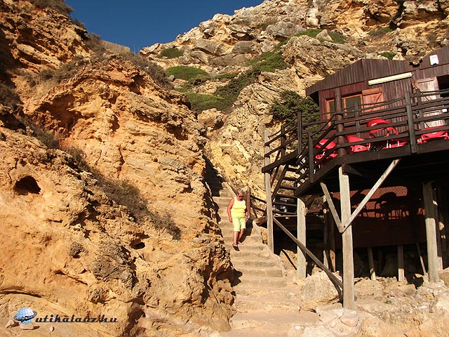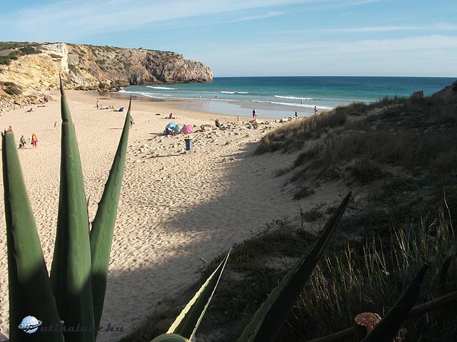 Sagresbe visszaérve nem bírtuk ki, hogy ne keressünk fel legalább egy strandot. A Praia do Belixe lejárata előtt korábbi útjainkon már legalább hatszor elmentünk autóval, amikor a szárazföldi Európa DNy-i végső pontját, a Szent-Vince-fokot néztük meg. Egyik alkalommal sem álltunk meg, ami érhető, mivel az útról a meredek part miatt nem látható. Csak lépcsőn közelíthető meg.