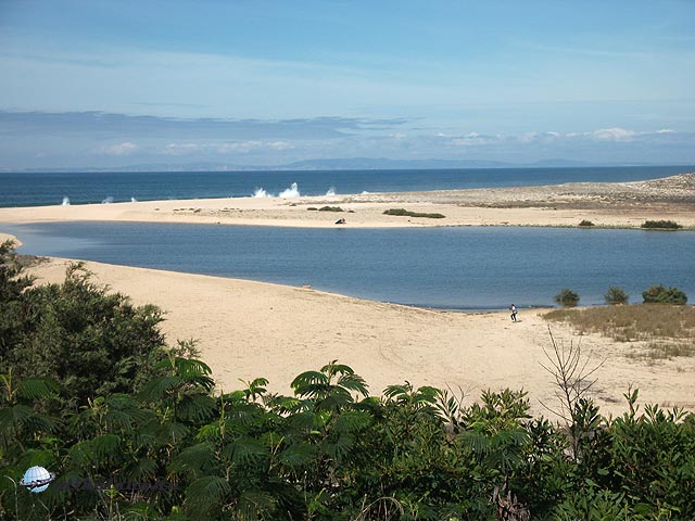 A kb. 20 km hosszú, homokdünén futó N-253-as úton Comportában álltunk meg egy kis falusi sétára meg egy ebédre. Tovább, az N-261-es úton több lehetőségünk is lett volna, hogy kimenjünk az óceán partjára, de idő hiányában csak a legérdekesebbet választottuk: Praia de Santo André / Lagoon. Itt óriási homokhegy választja el a kellemes és csendes vizű lagúnát az óceántól. Órákig tudtunk volna még gyalogolni és élvezni e nem mindennapi látványt.