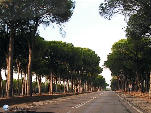 Az IC-1-es mentén telepített mandulafenyő fasor látványa bőségesen kárpótolt az úthibákért. Alcácer do Salban tartottunk egy órás pihenőt a Sado szépen kiépített partján, aztán sétáltunk egyet a túlparti rizsföldek mentén, majd némi kerülőutat felvállalva Torrao és Alvito érintésével végre Ferreirába érkeztünk.