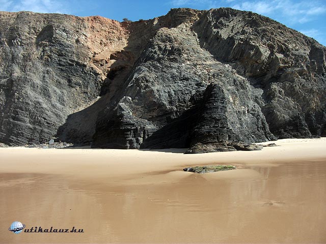 Praia do Castelejo és a Cordoama a sziklafal mögött