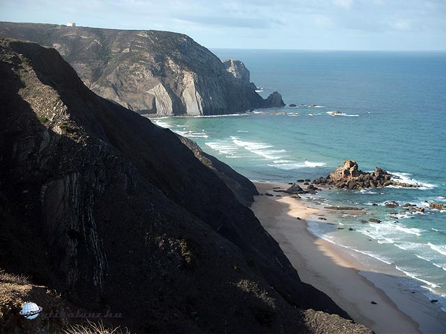 Praia do Castelejo, jobbra fenn a Terre de Aspa kilátó