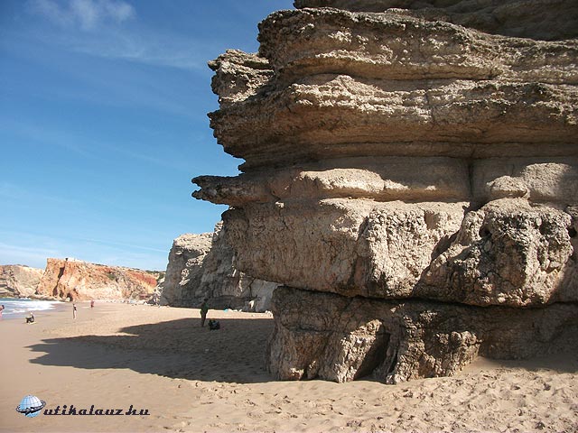 Praia da Amoreira jellegzetes sziklafala, a strand északi végén