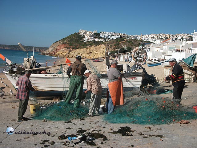 Másnap reggel terv szerint Carmen vezetésével elsétáltunk a sagresi halpiacra. Csalódtunk, kicsi volt a választék a kicsi település kicsi piacán. A többnyire douradaból és szardíniából álló “zsákmányt” Carmen pucolta meg, de újat nem tudott a nejemnek mutatni. Ha már délelőttre Sagresben maradtunk, kapóra jött, hogy megnézzünk egy másik sagresi strandot, a Martinhal-t. Sokat nem vártunk tőle, s úgy is lett. Mindenesetre, érdemes tájékozódni, amikor a turista strandot választ.