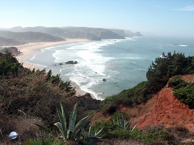 A következő hely, ahol megálltunk Odemira volt. Ahogy közeledtünk a településhez, a táj egyre zöldebb lett, jelezve az óceán közelségét. Itt már jártunk tavaly s most azt néztük meg, ami akkor kimaradt: a Mira folyó menti buja zöld rekreációs parkot, ahol kiváló helyet találtunk piknikebédünk elfogyasztásához is. Amint elértük a már többször végigjárt és a tengerparthoz legközelebb futó utat (N120), feltűnt, hogy tavaly óta jelentősen javultak élelmiszer-vásárlási lehetőségeink, mivel már itt is kemény versenyt vív egy Aldi és egy Lidl üzlet szinte látótávolságban egymástól. Az árak közel azonosak vagy verik a hazaiakat, s WC is van bennük (hála a portugál előírásoknak), ami jó hír az erre vetődő turistáknak. Ami még jobb hír, hogy innen már végig fő úticélunk, a Costa Vicentina nemzeti park mentén autóztunk. Közben azon tanakodtunk, hogy melyik praia (a portugál beach) legyen az idén az első.
