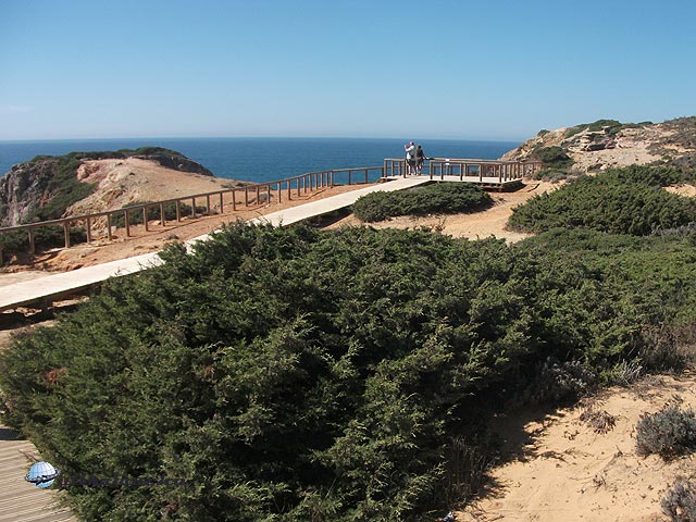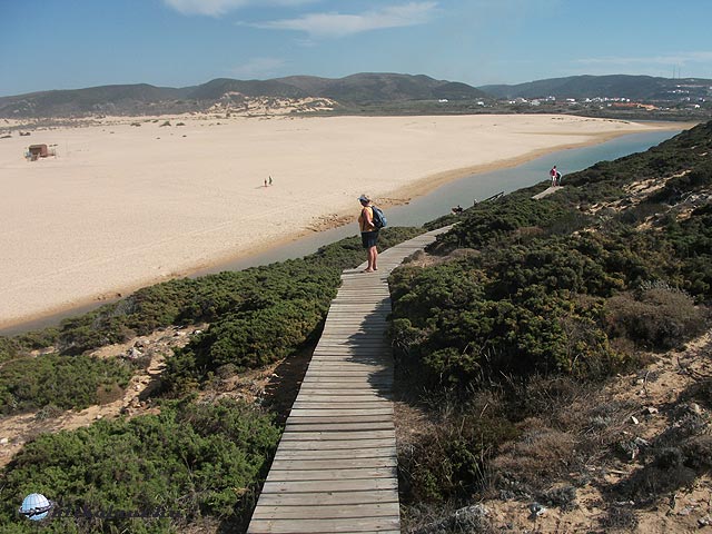 A főúttól kb. 5 km-es, látványos út vezet ki a partra a Seixe nevű folyó völgyét követve. A helynek különleges varázsa van. Az időszakos folyó medrében a vizet az esős telet kivéve mindig az óceán biztosítja. A víz az ár-apály jelenség miatt ki-be jár a szárazföld belseje és az óceán között. Algarve nyugati partján évről évre azt tapasztaltuk, hogy a nagy hullámok miatt fürdeni veszélyes, kivéve az ilyen folyótorkolatokat. Itt viszont nagy élmény a fürdés s a víz is melegebb lehet, mint az óceáné. Elő- vagy utószezonban, ha fürdeni mindig nem is, de gyalogolni annál inkább lehet ezekben a folyókban vagy a partjukon. 1-2 km után általában egy mocsarasnak tűnő vizes élőhelyhez érünk, melynek tanulmányozása további élményeket nyújthat.