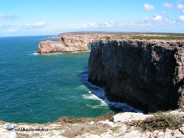 Egyik reggel rájöttünk, hogy Sagres kötelező látnivalóját idén még nem néztük meg. A Szent Vince foknál, Európa délnyugati csücskénél, mindig irigykedve gondolok a sok portugál felfedezőre, akiket Tengerész Henrik állítólag innen indított útjára. A fokot magát egy óriási világítótorony miatt nem lehet megnézni, de észak felé lélegzetelállító kilátás van. Amiről a helyet szerintem igen könnyű felismerni, az egy óriási cipő formájú szikla a part közelében.