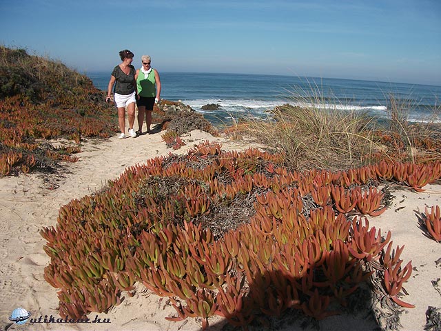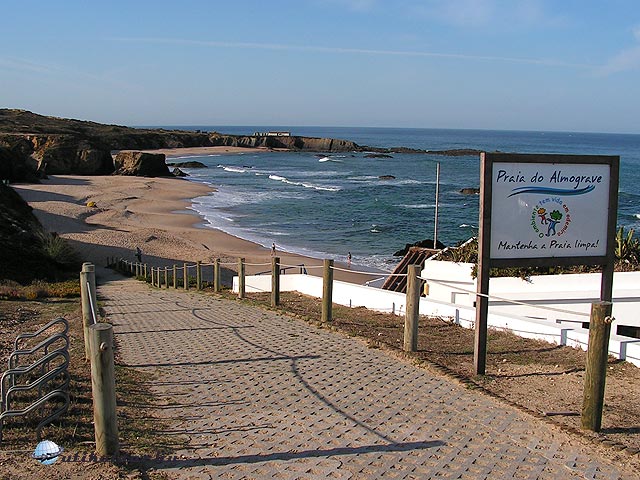 Útközben vissza Ferreira do Alentejoba nem bírtuk ki, hogy egy-két helyen ne menjünk ki a partra. A leghosszabb időt Almograveban töltöttük. Hála az uniós támogatásoknak, e kis település környéke is sokat fejlődött. Deszkasétányok, pihenőhelyek épültek. A látványos partszakasz mentén érdemes mindkét irányban túrázni. Kiváló piknikező helyeket is lehet találni.
