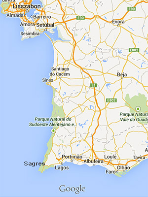 Sagres, Montijo, Palmela, Setúbal, Azeitao, Comporta, Ferreira do Alantejoba, Aljustrel, Odemira, Odeceixe, Vila do Bispo, Salema, Burgau, Aljezur, Arrifana