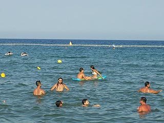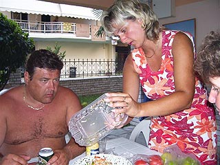 A tenger gyönyörű de a part mentén koszos, és tele van hínárral. Hát a horvát tengerpart szebb. De ha már itt vagyunk, egye fene. Fürdés után sörpróba. 2 gyros és egy korsó Mytos sör. Isteni! Vagy kettő Mytos és egy gyros?!