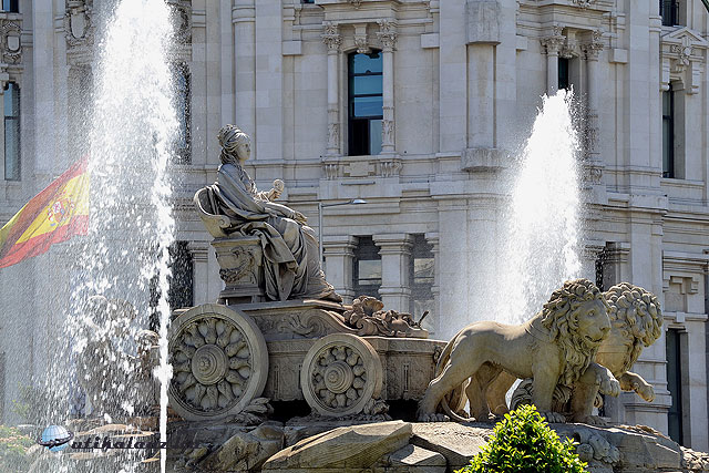 A Paseo de Recoletos-on végigsétálva (ami önmagában is egy látványossággal ér fel) a város egyik legszebb terére, a Plaza de Cibeles-re jutottunk. A tér közepén álló, Cibeles istennőt ábrázoló szökőkutat 1777 és 1782 között Ventura Rodriguez építette, körülötte pedig lenyűgöző paloták találhatók, amelyek közül talán a legszebb a korábban főpostaként, jelenleg városházaként funkcionáló Palacio de Comunicaciones, de itt található a Spanyol Bank (Banco de Espana) épülete is, amely alatt 30 m mélyen őrzik az ország aranykészletét.