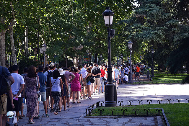Augusztusban Madridba menni…, na olyan emberrel nem találkoztam, aki ezt ajánlotta volna. A legvisszafogottabb vélemények szerint augusztusban még a madridiak is elhagyják a várost, mert nem lehet kibírni a hőséget. Igazából ez nem is nagyon jutott eszünkbe, amikor szerveztük az utat, csak menet közben, a rákészüléskor tudatosult bennünk, hogy mi várhat ránk, de akkor már nem volt mit tenni, csak reménykedni. Végül is nem sült el rosszul a dolog, az augusztus 17-i héten kis túlzással majdnem kellemesnek mondható, 30-32°C-os hőmérsékletet fogtunk ki (előtte itthon sem volt enyhébb az idő, sőt…), és ha hozzávesszük, hogy a fővárost gyakorlatilag körbevette egy elég durva viharzóna, ami a tengerparti üdülőhelyeken okozott is némi galibát, viszont az ország közepéig éppen nem ért el, még szerencsésnek is mondhatjuk magunkat.