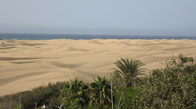 Noha a város egyáltalán nem bővelkedik látnivalókban, mert csak a turistákat kiszolgáló szállodák, éttermek, bevásárlóközpontok alkotják az utcákat, de mindenütt virágok, kaktuszok, bogainvillák és egyéb zöld növények színesítik a város arculatát. Ellenben van a városnak (vagy inkább a vele egybeépült Maspalomas-nak) egy nem mindennapi természeti képződménye, az óceán mellett sorakozó -vagy inkább vonuló – homokdűne sor. Hatalmas területet fed be a homok, és igazi sivatagi hangulatot kölcsönöz a tájnak. A homok nem áll meg. Látható iramban épít a szél újabb és újabb fodrokat a vándorló homokszemekből. A partot hatalmas hullámok ostromolják, amelyek nemcsak a gyakorlott szörfösöknek, hanem kisebbeknek és kezdőknek is nyújt páratlan szörf-érzést.