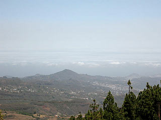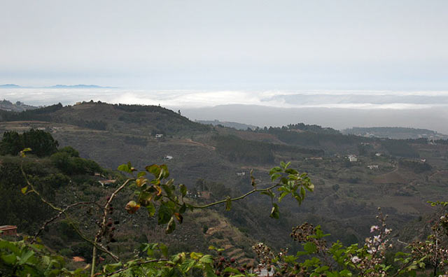 Ezután továbbhaladva Teror (egy “r”-rel) városa felé, a magasra hágó útról csodálatos kilátás nyílt a passzátfelhők alkotta párnára. Egészen eddig párás és szürke egyhangúság ülte meg a tájat, de felhőszint fölé jutva (kb. 500 m-en) még Tenerife csúcsai is feltűntek.