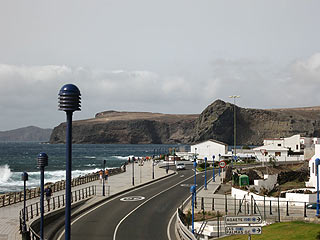 A szél, ami ott fogadott, minden eddigit felülmúlt, még a tengerparti úton is meg-megdobta az autót. De itt látszólag nem zavart senkit sem. Az emberek fürdőruhában jöttek-mentek a szélfútta utcácskákon, és nem sokat törődtek a viharos széllökésekkel. Hajdanán itt volt látható az “Isten ujja” (Dedo de Dios) nevű sziklaképződmény, amely azonban úgy tűnik, nem bírta tovább a szelet. Azért megpróbáltuk lefotózni a helyét, ami elég nehezen ment a fényképezőgépet is alig sikerült megtartani az erős szélben. A sikeres fotózás után olyan “Manci néni sütödéje” jellegű helyi kifőzdébe tértünk be, ahol összesen 10 euróért egy-egy adag sült tintahalkarikákat és csipsznek ehető egészben sütött apróhalakat ettünk meg egy-egy ásványvíz kíséretében. Majd megállapítottuk, hogy se kedvünk, se időnk újabb három órát szerpentinezni, így követve az előző utazók ajánlásait, mi is Las Palmas és az autópálya irányában tértünk haza nem egészen egy óra alatt.
