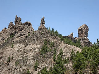 Ellenben ötven méterenként az árnyékban, vagy a tűző napon pihegő elfáradt emberek, mint élő kilométerkövek jelezték a csúcshoz vezető utat. Nem álltunk be közéjük, hanem fényképkészítés után visszafordulva elindultunk az autóval megközelíthető Roque de las Nievas irányába.