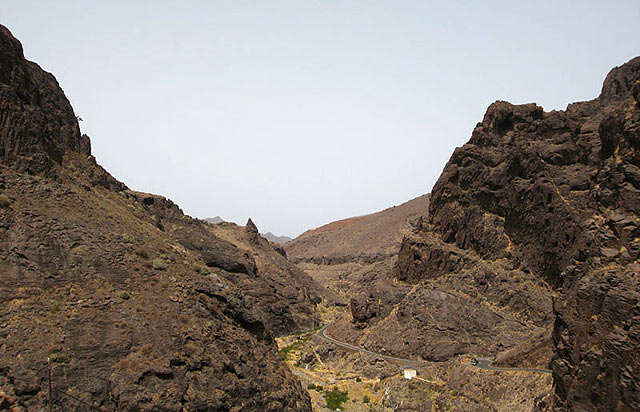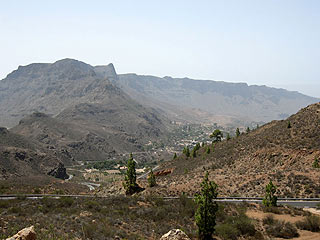 San Nicolas de Tolentino városából elfordultunk (miután az útikönyv se sok szépet írt, így mi sem töltöttünk el időt ott) Artenara irányába (GC 210) egy vízmosta szurdok oldalán.