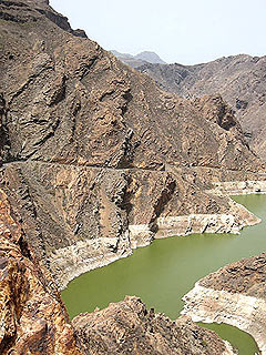 Visszafelé úton derült aztán ki, hogy bizony még messze voltunk a céltól, a Roque Nueblótól. Ayacatát ismét elérve, más utat választottunk a hazatérésre. Kezdetben kopár és egyhangú volt a táj, aztán még kopárabb, de egyhangúnak nem nevezhető lett. Ha valaki leküzdötte a Fatagába vezető út szerpentinjeit, itt jöhetett rá, eddig milyen könnyű dolga volt. Az egy autó széles (de magyar egy számjegyű főút minőségű!), csak szerpentinből álló útszakasz vezetett Mogan-ba. Motorfék, kettes, nem lenézni a korláton túlra! A kopárságot egy helyen szakította meg egy kiszáradófélben lévő víztározó nem éppen szívderítő látványa. Mogán nem tűnt megnézésre érdemes falunak, inkább az útikönyvek és útikalauzosok által ajánlott Puerto de Mogán -ba igyekeztünk.