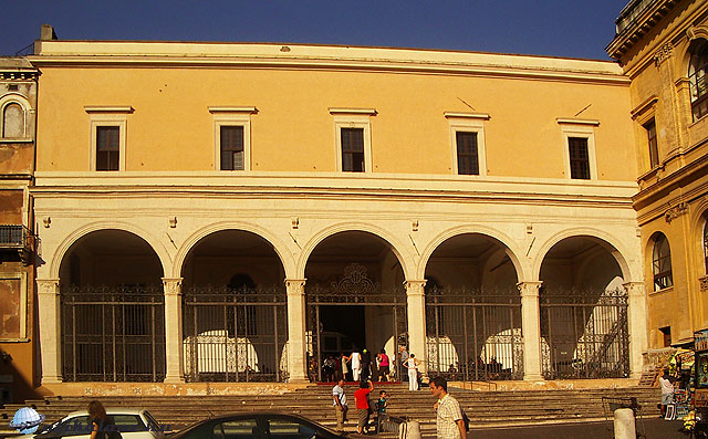 A tengert sajnos nem láttuk, mert egyrészt sötétedett erősen, másrészt párás is volt a levegő. Az épületek, bástyák, mindenütt szépen meg voltak világítva. Visszaballagtunk a Piázza della Liberta-ra, a Kormányzói Palotáig. Tényleg picinyke az épület, de hát az ország is pindurka.