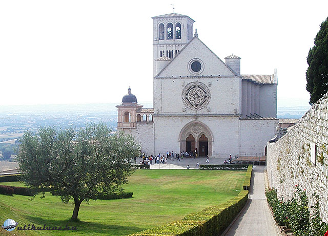 Jól megéheztünk. Az egyik utcácska büféjében finom szendvicseket kaptunk (darabját 3 euróért), majd ugyanitt fagyit is (szintén 3-ért). Itt minden a város híres szülöttjéről, Szent Ferencről szól. Kívülről kissé puritán a bazilika, de igen érdekes, hogy a templomhajók egymáshoz képest szinteltolásosak.