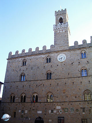 Ezt a napot gyakorlatilag lustálkodással, pihenéssel töltöttük a szállásunkon. Amikor alábbhagyott a meleg, kb. 6 körül indultunk el a közeli Volterrába. Egy mélygarázsban parkoltunk a főtér közelében (1,5 Euro/óra). Szinte felüdülés volt, hogy nem volt annyi turista, mint Firenzében. A főtéren található Toszkána legrégebbi városházája 1208-ból, a homlokzatát díszítő terrakották is régen, a 15. sz.-ban készültek. Az épület sarkain lévő két kőoroszlán Firenze fennhatóságát jelképezte.