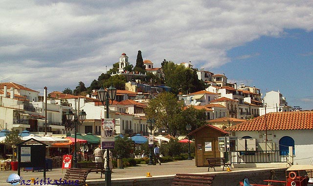 Skiathosz város a kikötő felől