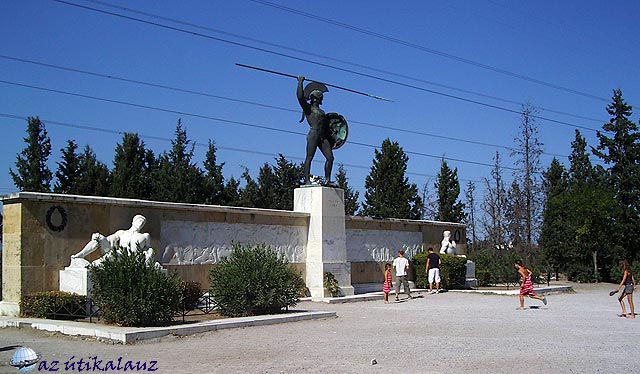 A hős Leonidász és 300 katonája csak “kicsit megkésve”, 1955-ben (2435 év késéssel) kapott emlékművet. A perzsák elleni dicső helytállást megörökítő alkotás nem keveset veszít az értékéből azzal, hogy sokan a közvetlenül mögötte lévő részt illemhelynek használják. Volt szerencsénk azt is megtapasztalni, hogy egy görög család férfi tagja felmászott a szobor mellé a falra. És úgy fényképeztette magát. Lesújtó!