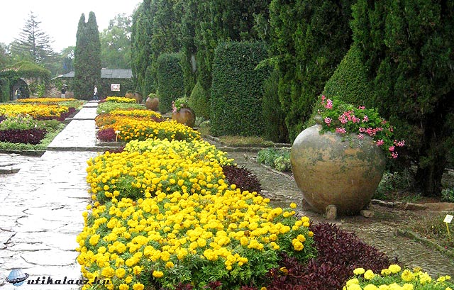 Hosszú buszozásra indultunk Várnán keresztül (kb. 80 km). Tizenegy órakor érkeztünk Balcsikra, zuhogó esőben. Itt 10 L/fő belépővel juthattunk be a botanikus kertbe. Elég sokat várakoztunk a csoportos jegyváltásra.  Végigsétáltunk a botanikus kerten, ami nagyon szép volt (virágágyásokban sok színes virág, egy  másik részen hatalmas kaktuszok), később  egy vízesés mellett mentünk el a tengerparti rózsaliget mellett, majd megnéztük az egykori román királynői nyári kastélyt. (A két világháború között Romániához tartozott a terület). Jelenleg múzeumként szolgál, de nem eredeti berendezéssel. Néhány fénykép és az emléktárgyak  emlékeztetnek az eredeti berendezésre. Utána újra esőben  végigmentünk a szép virágágyások mellett és buszra ültünk.