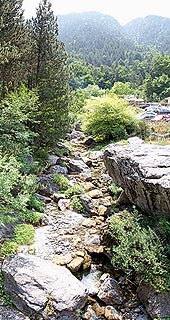 Tehát ez döntötte el alapvetően, hogy odafelé autópályán megyünk és Platamonásnál most nem állunk meg (kissé be voltunk sózva és mihamarabb szerettünk volna eljutni a Meteorákhoz) csak a Tempi völgyénél egy rövid pihenőre. A völgy maga gyönyörű, azonban a parkoló állandóan zsúfolt és ha érkeznek a buszok akkor szinte csak sodródni lehet a tömeggel. Szabályosan lerohanják a látnivalókat, emlékhelyet, vallási helyet. Aztán, ha jobban körülnézünk, láthatjuk, hogy ez a mesterségesen kiépített emlékhely sok-sok betonnal, ami nem valami szép. De hát nem is ez volt a célja, hanem a túlélők hálából emelt vallási emlékhelye. A folyót közelebbről megnézve elszomorító a benne rejlő fél deszkaajtó, stb. Talán az a baj, hogy mást vár az ember. De a táj egyébként lenyűgőzően szép, bár a vezető inkább ne nézelődjön, mert hamar lent találhatja magát.