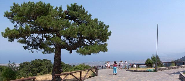 Lefelé több helyen is megálltunk néztünk a panorámát és szívtuk a csodálatos levegőt magunkba. Majd megálltunk a Stavros pihenő-kilátónál (~910 m). A párás levegő azért korlátozza a panoráma mélységét, de így is pazar.