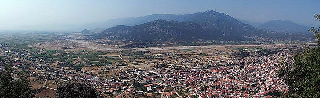 Szomorúan vettünk búcsút a Meteoráktól. Majd elindultunk le Kalambakába és onnan Ioanina felé. Hamarosan megálltunk egy dinnyeárusnál, mert igazi, szép sötétzöld dinnyéket találtunk, amelyek még 1970. körül voltak mindennaposak Hevesben. Azonban az ára már EU-s volt 55 cent/kg (Kateriniben 18c/kg volt a csíkos dinnye), míg a sárga még drágább volt. Így hamar elment egy tizes. Majd kb 10 km-re elfordulunk Grevena irányába. Röpke 13 km-re lesz egy ismételt elágazás, ahol letérünk erről az útról és a 26-os útra, amely elvisz minket Elassona városába. A papír navigációval valahogy sikerült az egyik körforgalomnál benavigálni magunkat egy kisvárosba, ahol olyan utcák voltak, hogy csak éppen elfért széltében az autó a házak közt. Élő labirintus volt.