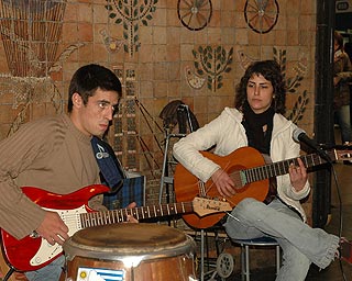 Bár a tavaszt itthon hagytuk, ott nem volt valami jó időnk, a város nagyon élt. Hihetetlenül jó és igényes zenék (gitár, gitár és megint gitár) az utcán, a metrólejáróban, a kávéházakban. Amit időnként elnyom a focinézők táborának moraja. Óriás kivetítőkön mindig (reggel kilenckor és este tízkor is) meccset néznek. Két gyerek, ha összeáll, csak focizik. A legszűkebb sikátorban is.