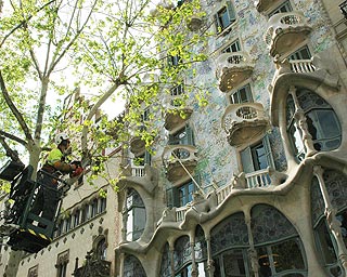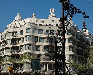 | A Martí Codolar kertje | A La pedrera, másik lakóháza Gaudinak. Előtte a lámpavas is az övé. |