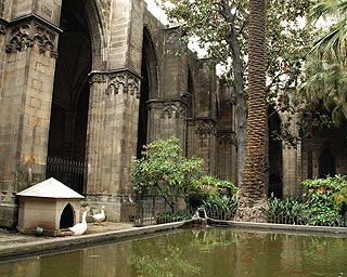 Kivéve a Barri Goticot. Ez a gótikus negyed szűk utcácskáival és minden házán millió részlet-meglepetésével éles kontrasztja és egyben párosa az előbbinek. A közepén álló La Seu (Szent Eulália) katedrális a legtisztább gótika csodája. Külön érdekessége belső udvara, ahol – mint a mitológiai görögök – káráló házőrző libákat tartanak, hagyományból, pálmák és narancsfák között. Itt futottunk össze esztergomiakkal az inkább hangos, mint megilletődött húsvéti nagymisén.