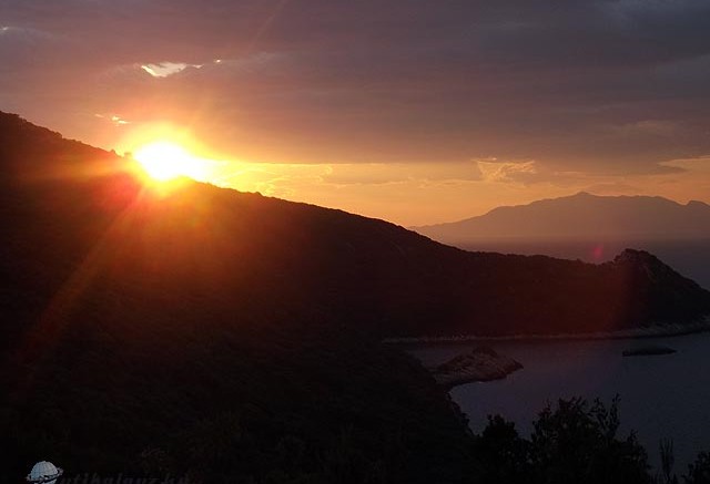 A főúttól közelíthető meg Odüsszeusz barlangja igen kalandosan, mivel elég ritkásan tették ki az irányjelző táblákat, kettővel találkoztunk útközben. A főúttól körülbelül másfél kilométert mentünk olajfa ligeten át, árokban, meredek, köves ösvényen, ami kiszélesedett murvás útra, ahol akár autóval is lehetett volna menni, azután újból összeszűkült és sok lépcső is vezetett a barlangig. A nehéz terepért a csodás panoráma kárpótolt minket. A barlangba sajnos nem tudtunk bemenni, mert körbe van kerítve.